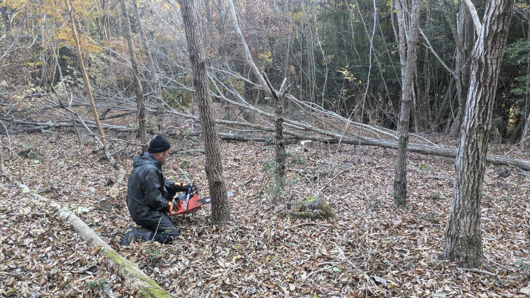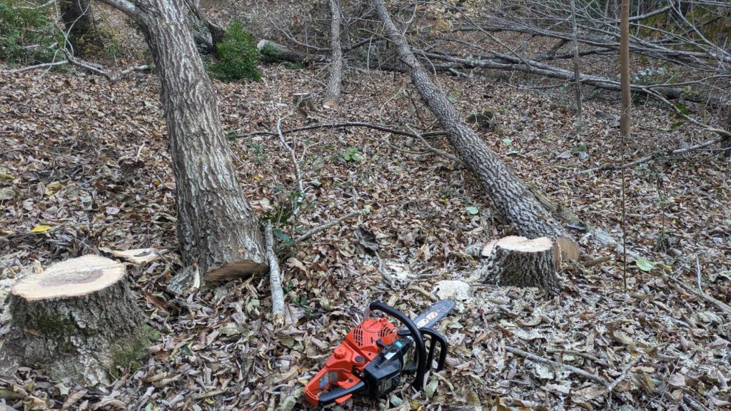 げんぼく椎茸用のコナラの木伐採しました。
