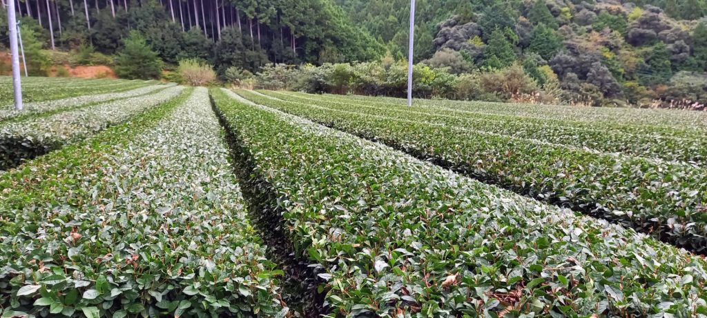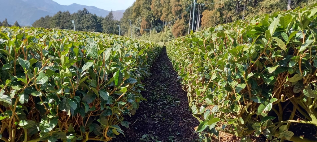 化粧ならし茶園の畝表面を揃え刈りやすくします。 裾刈り風通しを良くし病気や害虫を抑止します。新茶敵採作業がスムーズに行えます。